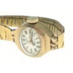 A ROTARY 375 gold cocktail watch with rolled gold strap, face 1.5cm width, scratch on face, gross weight 13.1g approx