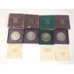 Four boxed 1951 FESTIVAL OF BRITAIN Crowns in boxes three with coa, all four coins excellent but boxes with wear.