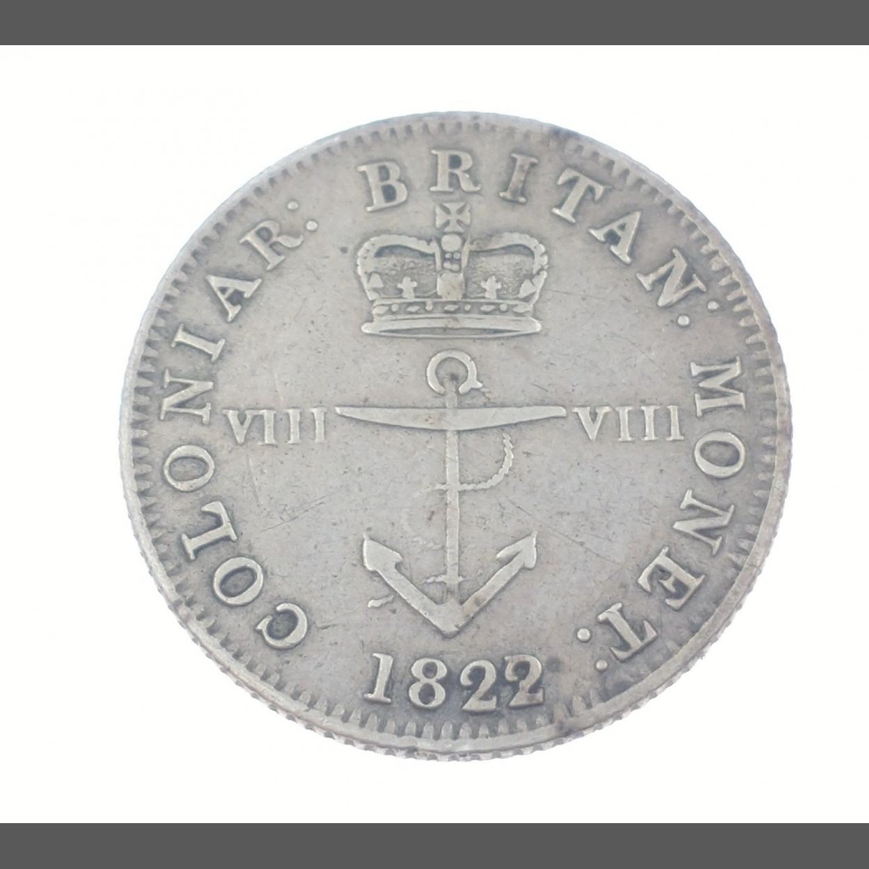 British Colonies, George IV 1822 Anchor 1/8th Dollar. A beautiful example of this pretty little coin. 20mm approx, weight 3.3g approx.