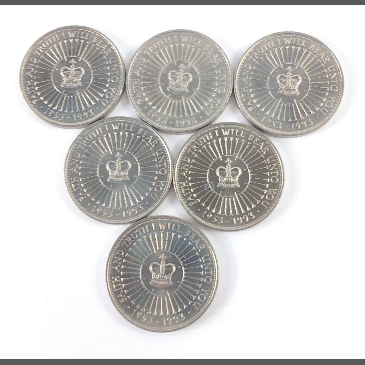 Six 1993 UNITED KINGDOM Five Pound Crowns. All in very good grade.