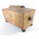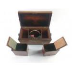 A vintage wooden tea caddy with 2 interior boxes and space for mixing tea leaves, measures 30x16x15cm approx