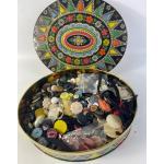 A BEAUTIFUL WORK OF ART vintage biscuit tin STUFFED with sewing bee buttons