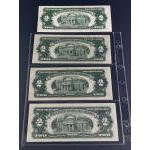 UNITED STATES 1953 Two Dollar Banknotes x 4. All Red Seals. All 'A' Prefix Notes. All nice notes in good collectible grades.