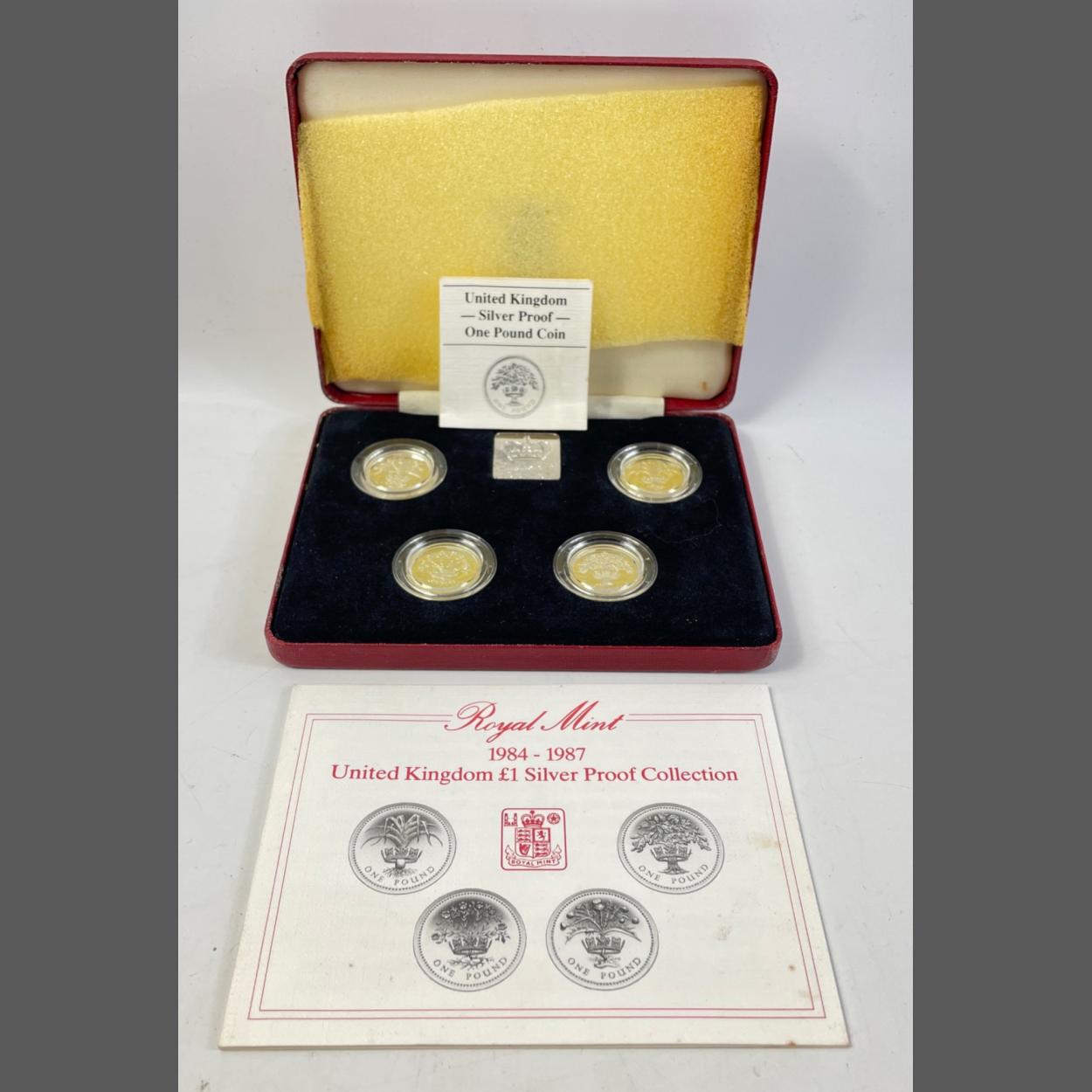 ROYAL MINT 1987 - 1987 UNITED KINGDOM SIlver Proof Collection of four One Pound Coins in poor case. Coins remain Mint UNC and are encapsulated.