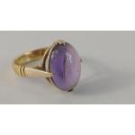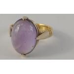 A 22ct stamped yellow gold cabochon oval amethyst ring size L, stone is 1.5 x 1cm, gross weight 4.50g