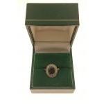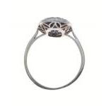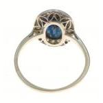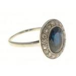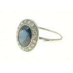 A white metal oval shaped blue stone and diamond ring size M, gross weight 2.60g