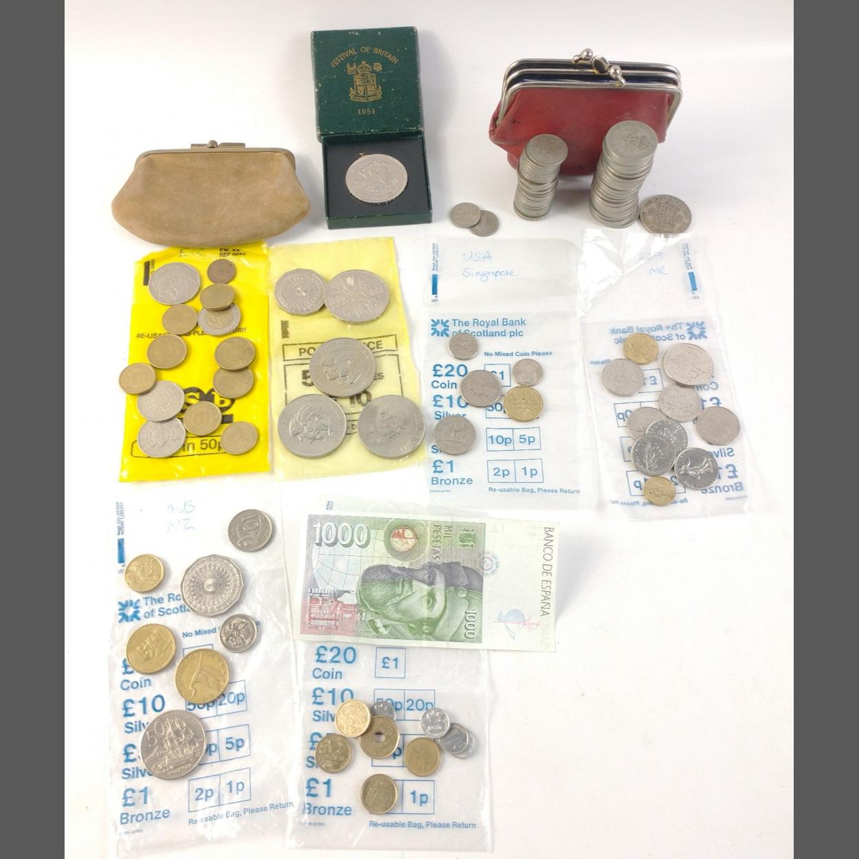 A quantity of coinage to include Churchill commemorative, 1951 Festival of Britain coin, half-crowns and shillings etc