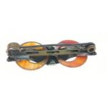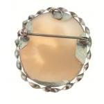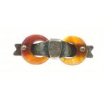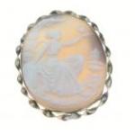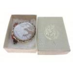 VINTAGE - A small box with 2 brooches one is a yellow metal cameo (4.75x4cm) the other is a white metal buckle style brooch with circular amber style ends