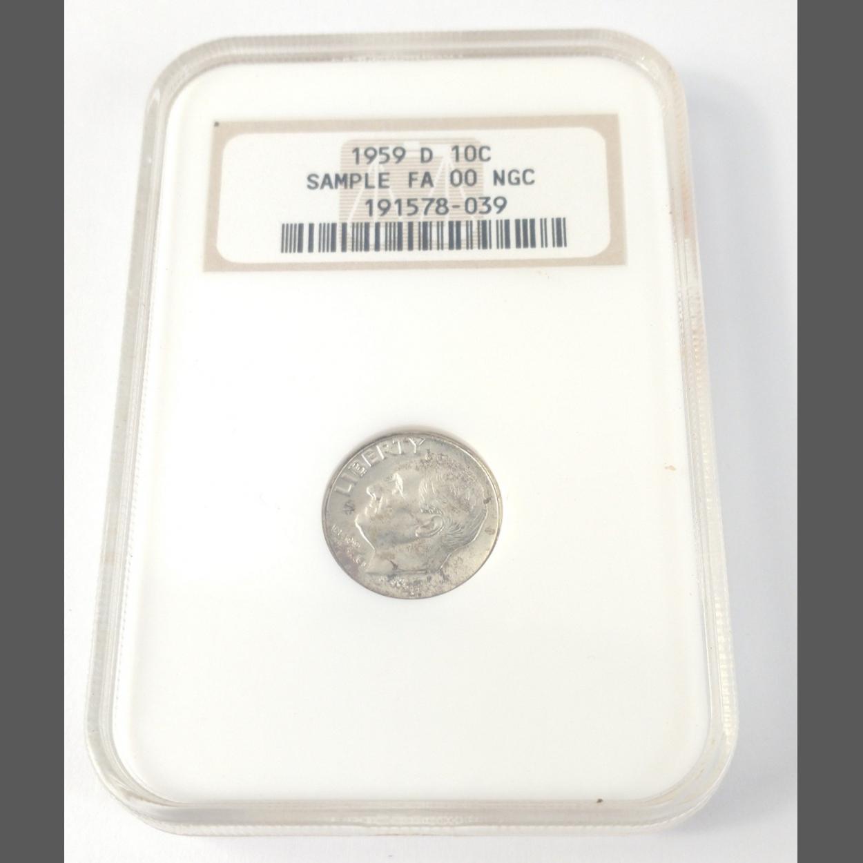 UNITED STATES 1959 One Dime coin. Slabbed by NGC as SAMPLE FA