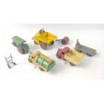 DINKY Commercials lot to include Muir-Hill Dumper, Bedford Tipper. Bedfords Waste Cart, B.E.V. Truck, Aveling-Barford roller, garden roller. All in good collectible condition.