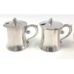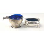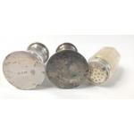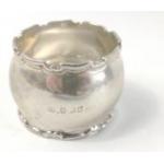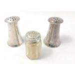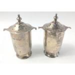 A collection of hallmarked silver cruets to include 2 pepper pots Chester 1913, 2 lidded pots with handles and blue grass liners Chester 1914, a small bowl minus lid, with blue glass liner Edinburgh 1921, 2 urn shaped shakers one with blue glass liner Sheffield 1921, an oval shaped dish with blue glass liner Birmingham 1955, a napkin ring Sheffield 1911and a small glass pepper pot stamped Sterling Silver, total weight minus glass 319g