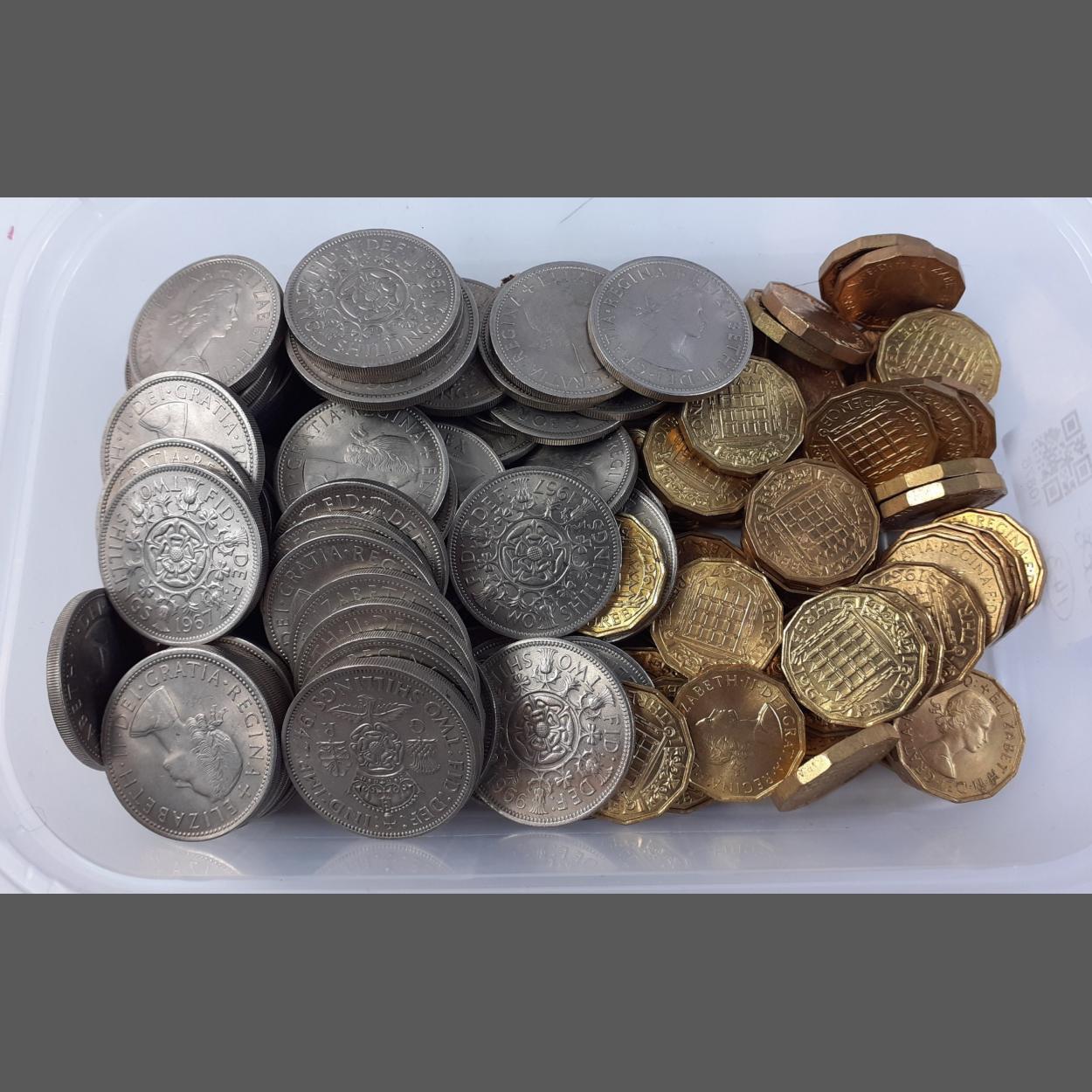A small tub of UK Queen Elizabeth II FLORINS and THRUPPENCES all in nice, shiny condition