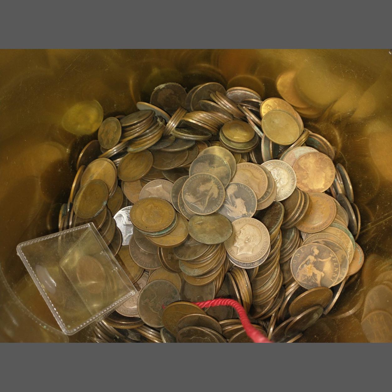 A jolly, happy tin of obsolete UK copper coinage almost too heavy to lift