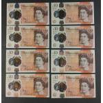 Eight polymer Bank of England CLELAND ten pound notes. All uncirculated condition