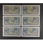 Scottish Banknotes from a superior collection. The Union Bank of Scotland one pound notes x 6. All dated 1st June 1954. All very attractive notes in good collectible grades.