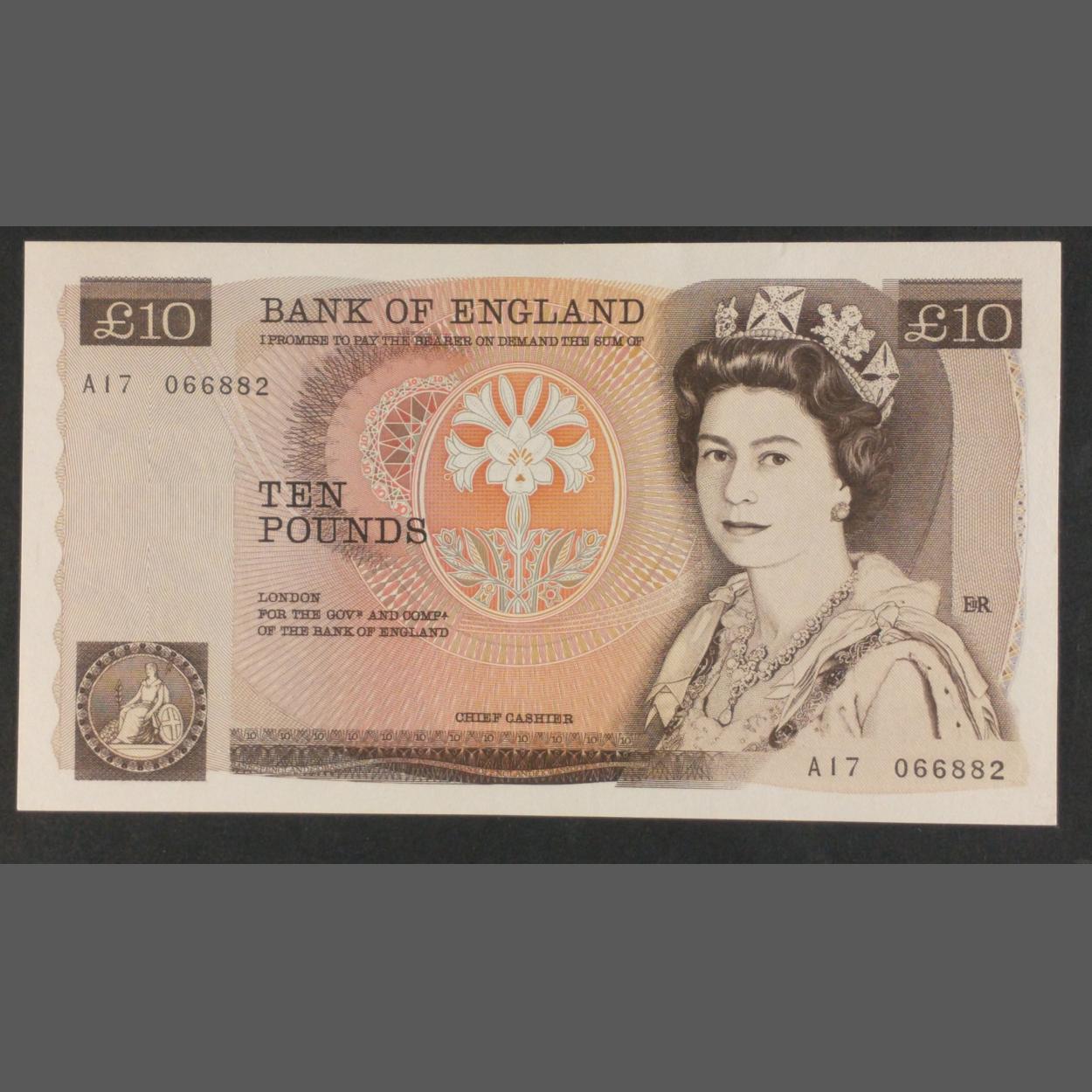 Rare Bank of England brown £10 banknote A17 066882 Unusual unsigned Chief Cashier. (Missing Jo Page signature). Rare known and listed error catalogued as G2e in Banknote Yearbook.