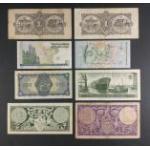 An interesting lot of assorted Scottish £1 banknotes to include a 1967 crisp and clean Clydesdale Bank, an Alexander Graham Bell 1997 in good grade with very minor crease, 1968 British Linen Bank with wear, 1999 RBS Scottish Parliament in crisp condition, 1964 National Commercial note with light wear, 1953 Commercial Bank purple with wear and two RBS notes with wear from 1965 / 1966. Eight collectible notes in total.