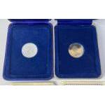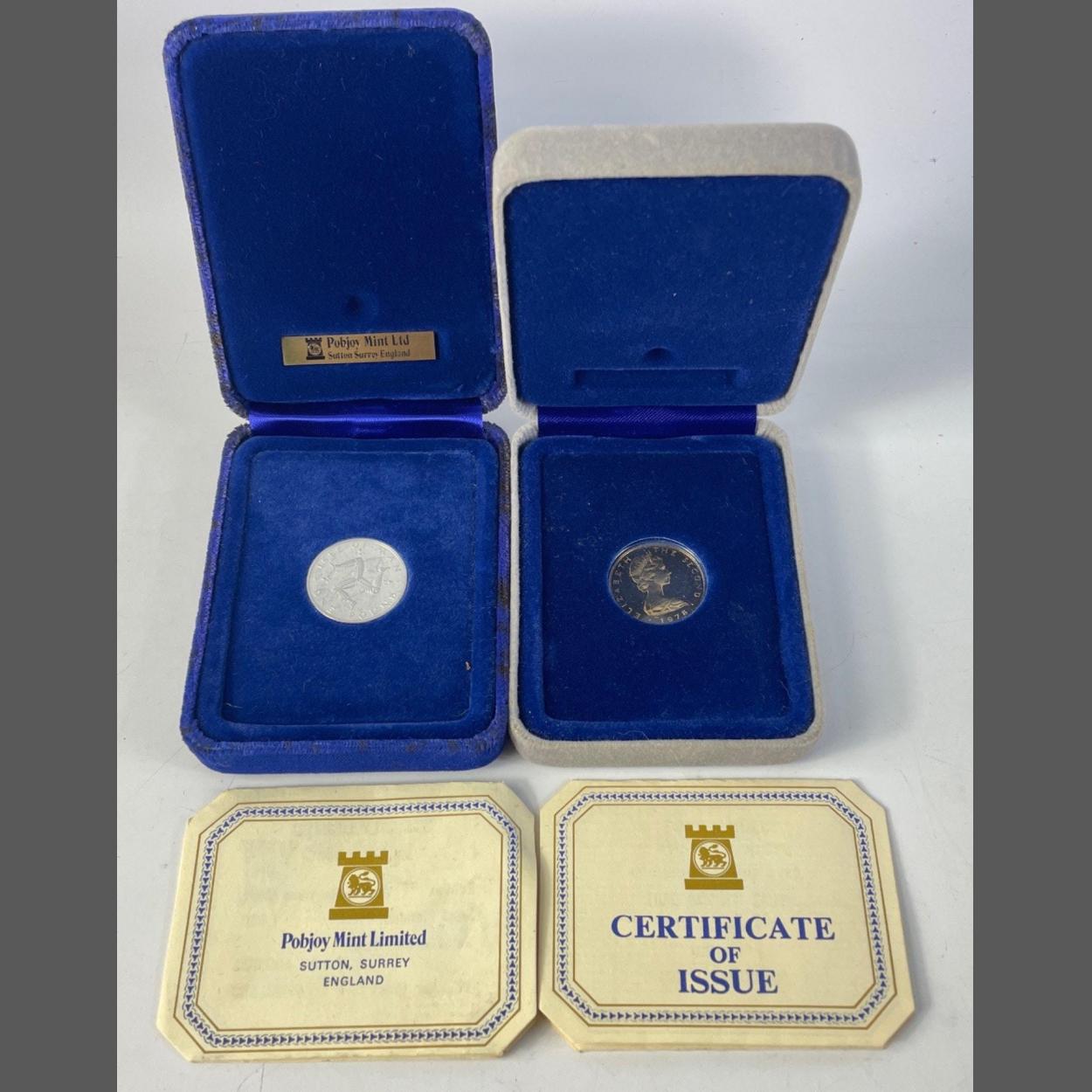 Two ISLE OF MAN silver proof one pound coins in presentation cases both with certificates from the Pobjoy Mint, Surrey,