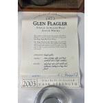An unusual collector's item being an empty 1973 GLEN FLAGLER whisky bottle from 2003- bottle number 318/931 within a wooden presentation box complete with a certificate of authenticity signed by master blender E L Drummond