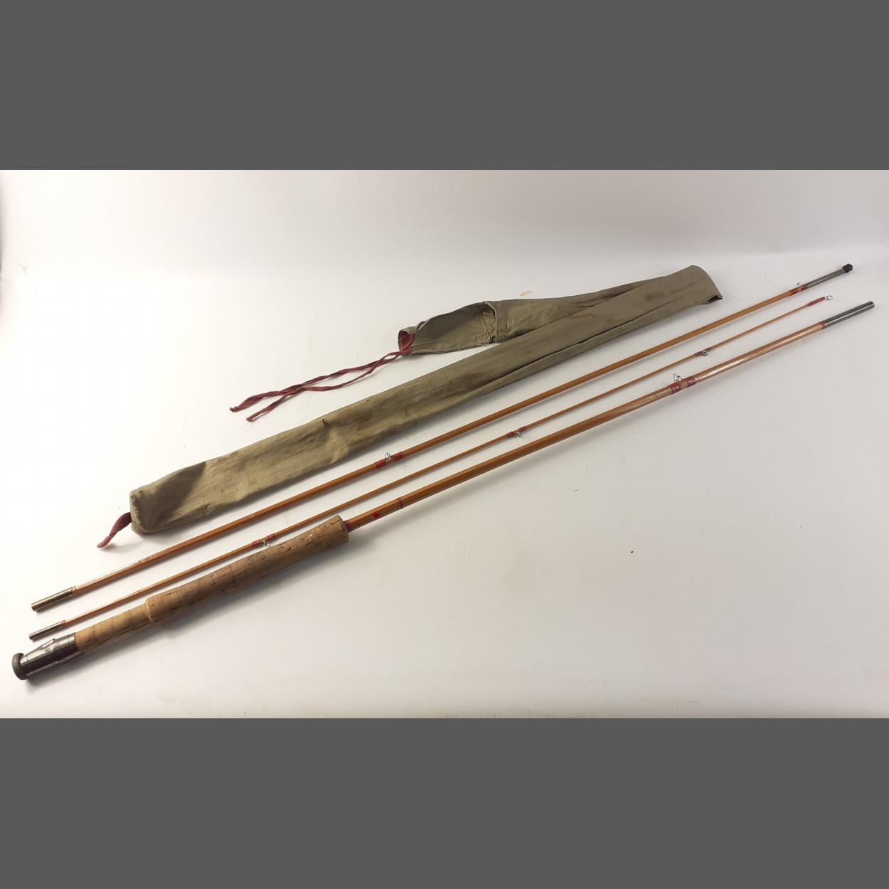 A three piece MARTIN JAMES of REDDITCH split cane trout fly rod in excellent condition. Approx 9ft in length.