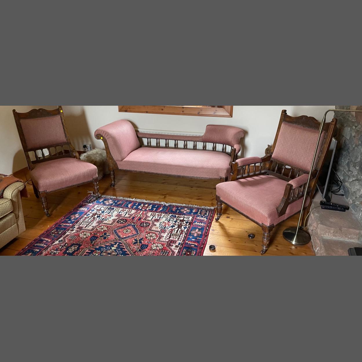 An EDWARDIAN chaise longue with matching his and her matching chairs - all are in amazing condition