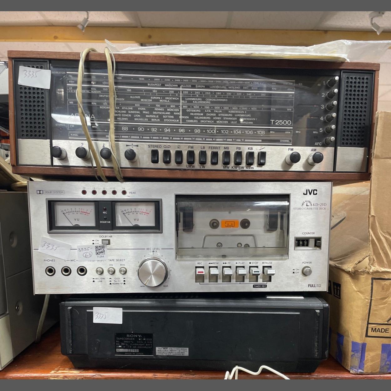 Build your own music centre or centres with a choice from an AKAI 77 both way cassette recorder, a SONY tape recorder, a JVC cassette recorder, an ARENA radio, a TECHNICS SU-Z55 amplifier and 4 turntables