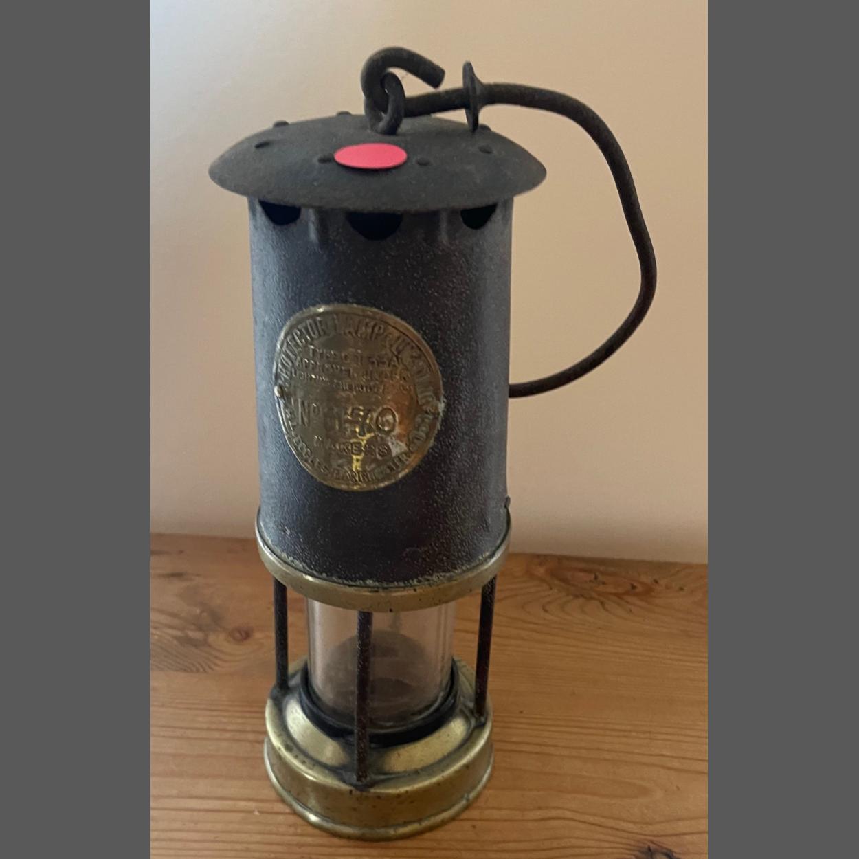 An ECCLES made antique brass miners safety lamp No 170 ( low manufacture No) - height 28cm approx