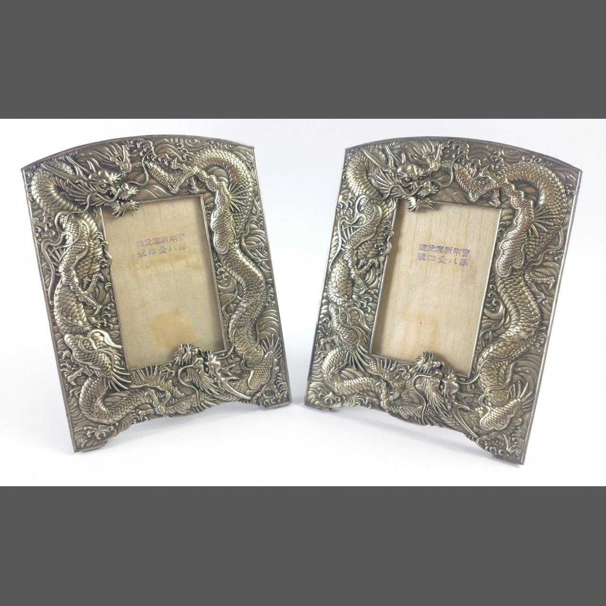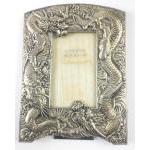 A pair of white metal intricate Dragon photo frames 20x15cm in portrait orientation