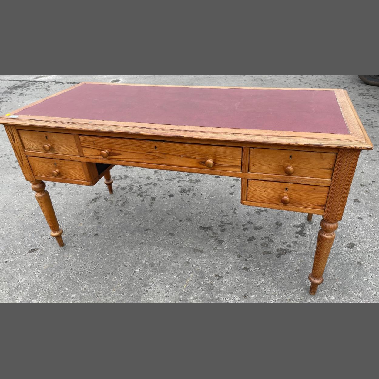 SOLID! A nice EDWARDIAN shallow knee-hole long desk with 5 drawers and a red leather top - 5ft length x 18" depth approx