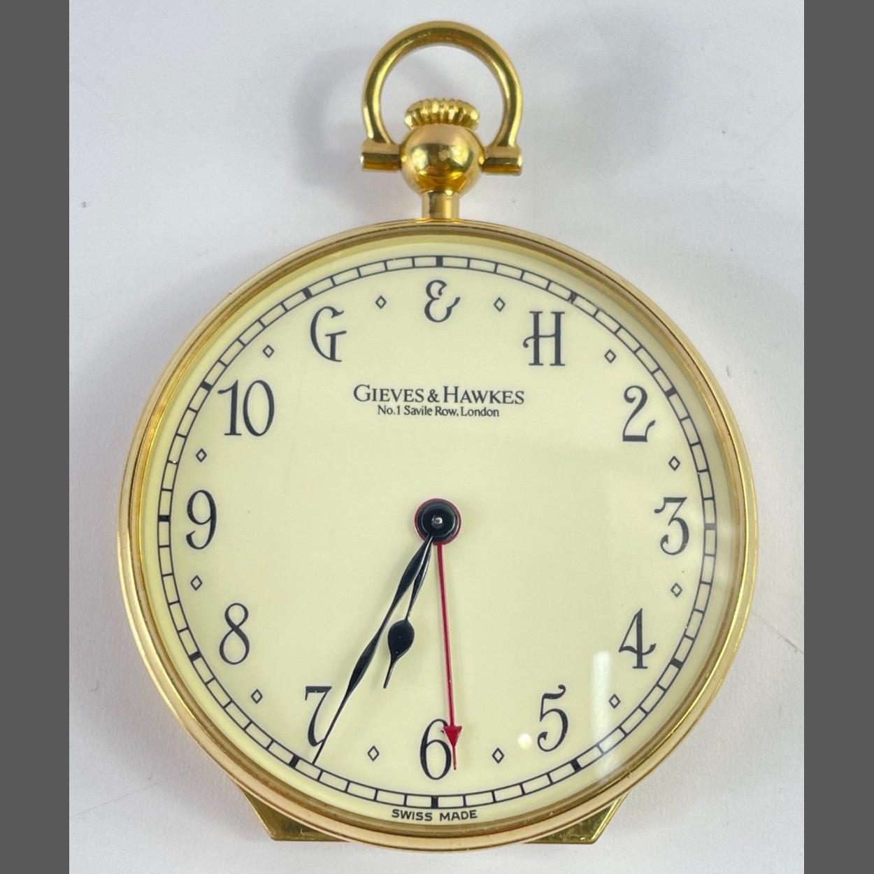 A GIEVES&HAWKES pocket watch, face measures 4cm. Comes with a slightly worn Gieves & Hawkes wooden presentation box with faux leather cover and metal edges