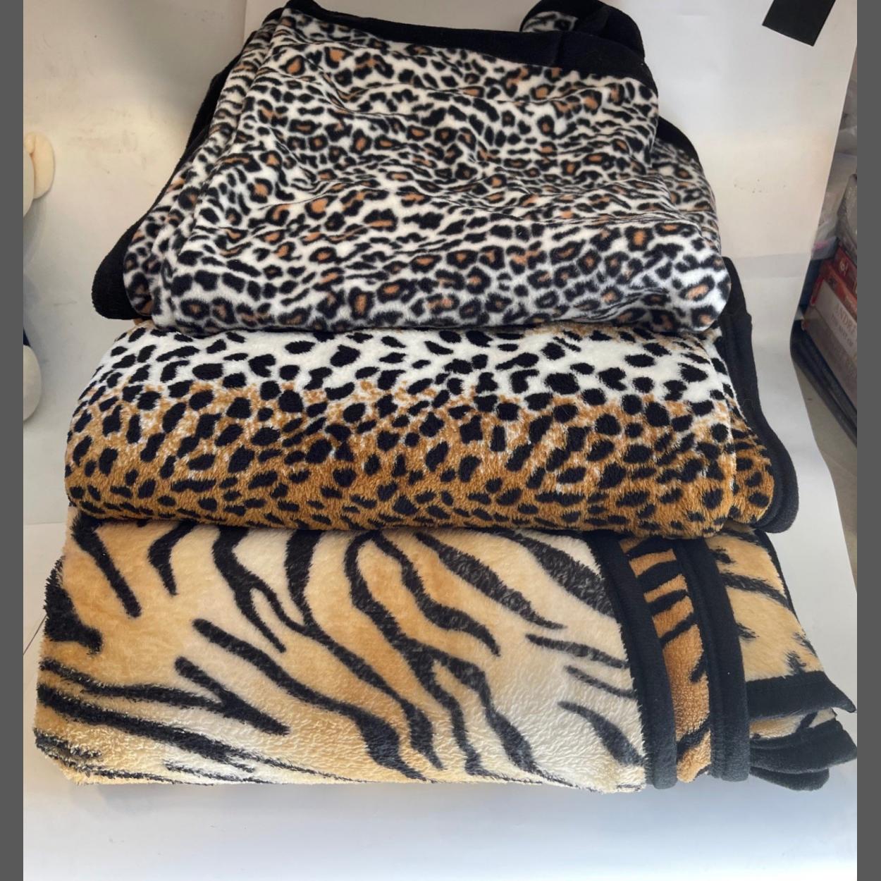 TWO ANIMAL PRINT throws as new condition and a leopard print inspired cosy bed- jacket, as new condition