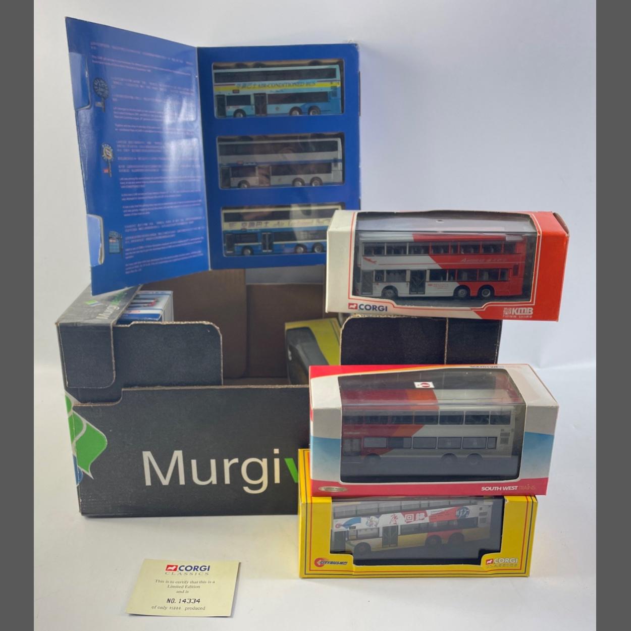 A small collection of diecast bus models with an Oriental theme. Nine in total by Corgi, Creative Master, MBE. Boxes may have issues from storage.