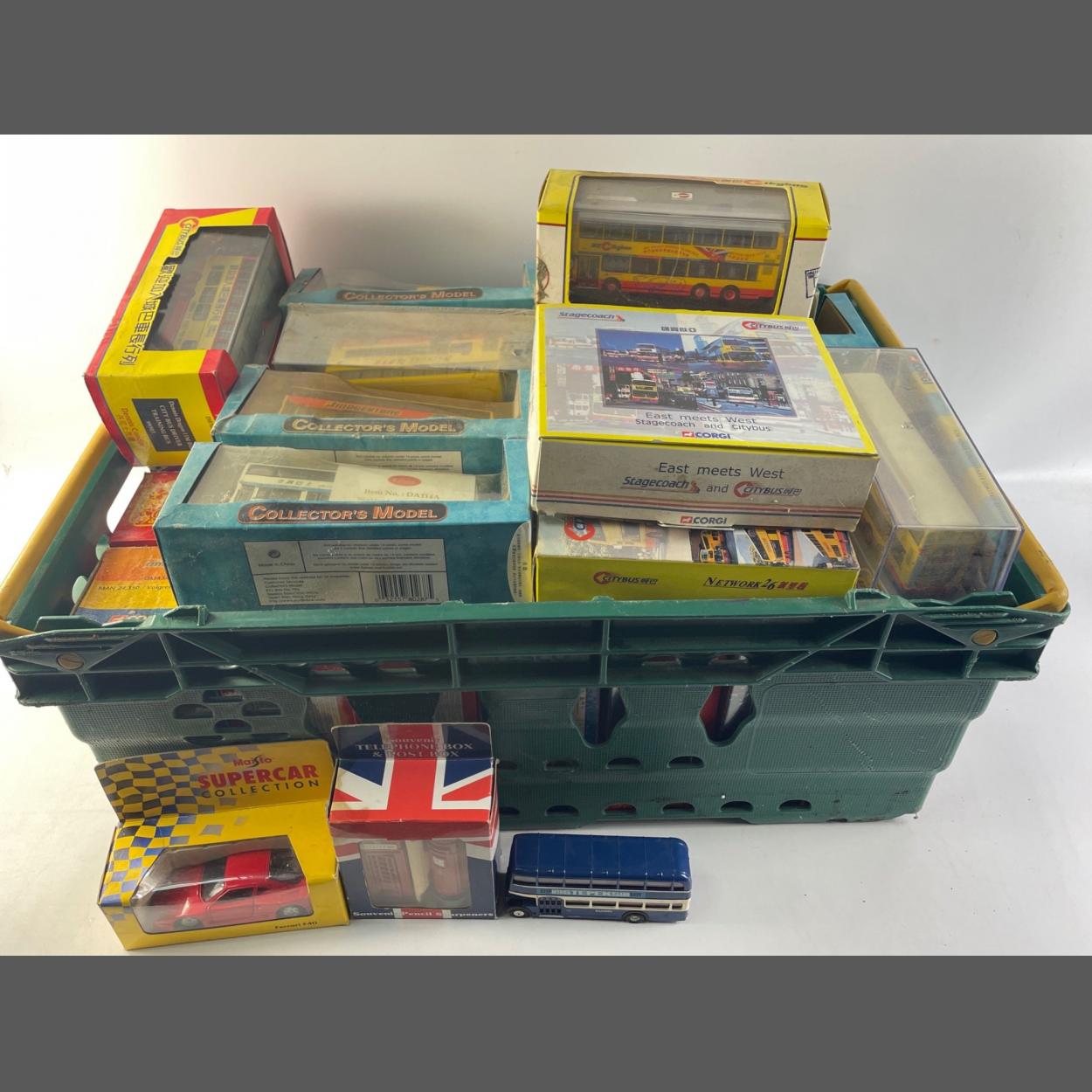 A substantial collection of diecast bus models with an oriental theme. Over thirty pieces however many boxes have damage from poor storage.