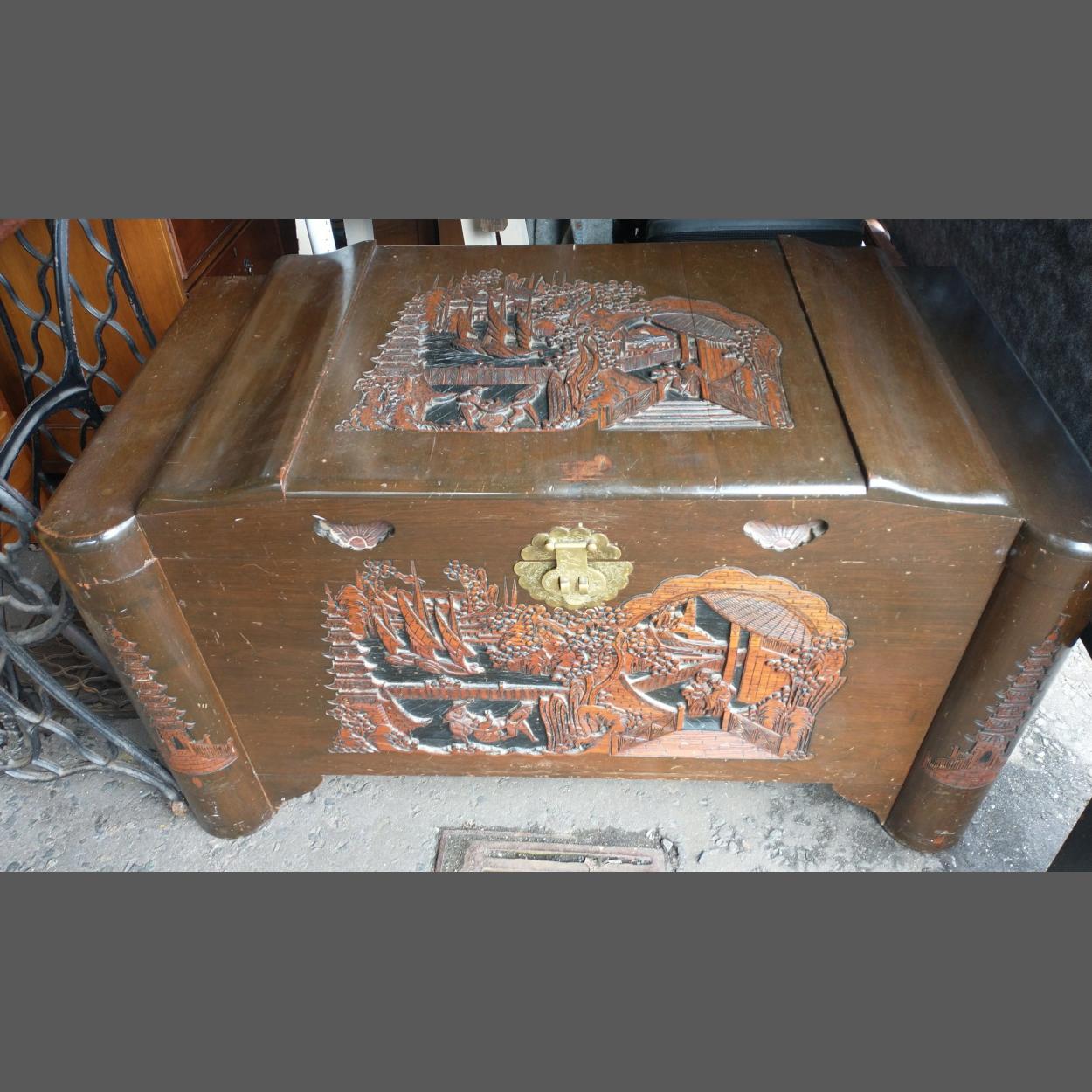 An ORIENTAL camphor wood chest circa 1940's (brought back just after the 2nd World War) dimensions 2.5ft wide x 18" height x 18" depth approx