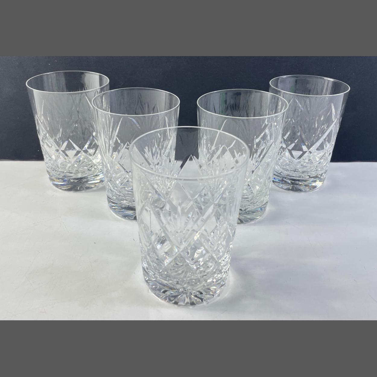 A set of FIVE EDINBURGH CRYSTAL med sized whisky tumblers 8cm tall x 6cm diameter approx