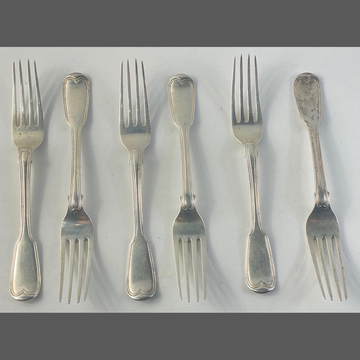 A set of six sterling silver Victorian dessert forks hallmarked London 1826 by William Chawner maker, weight 295g approx. each fork approx 17cm