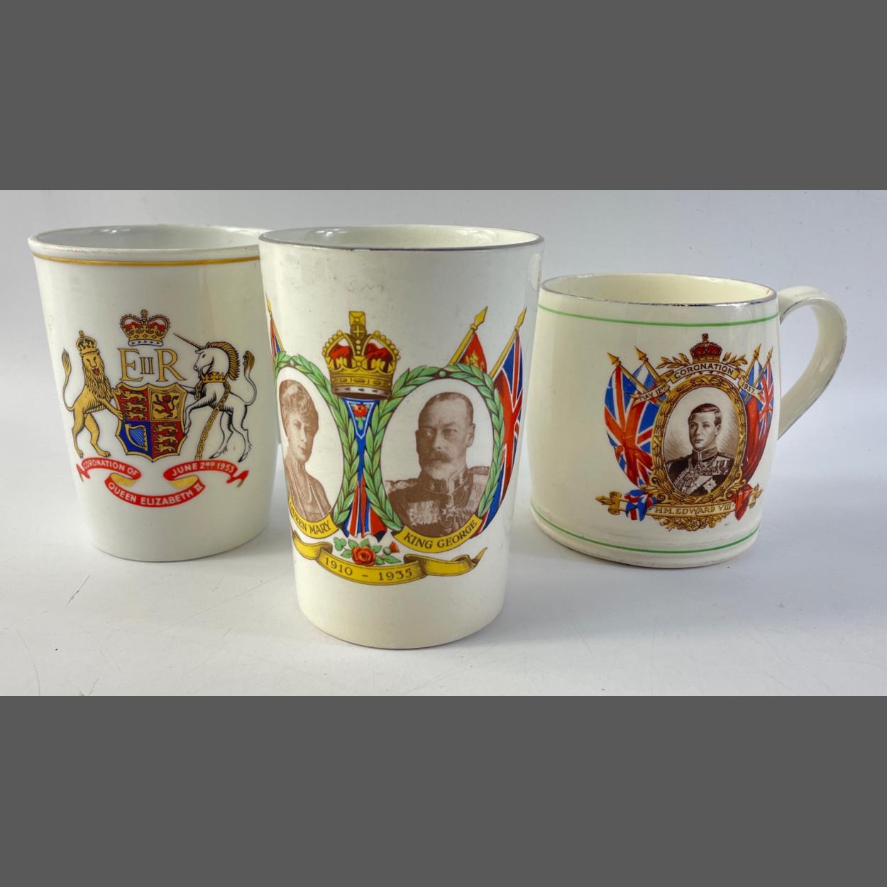 A trio to include EllR collectible June 3rd coronation mug, also a George V and Queen Mary 1935 'Silver Jubilee' ceramic tumbler and lastly a King Edward Vlll coronation mug May 12th 1938