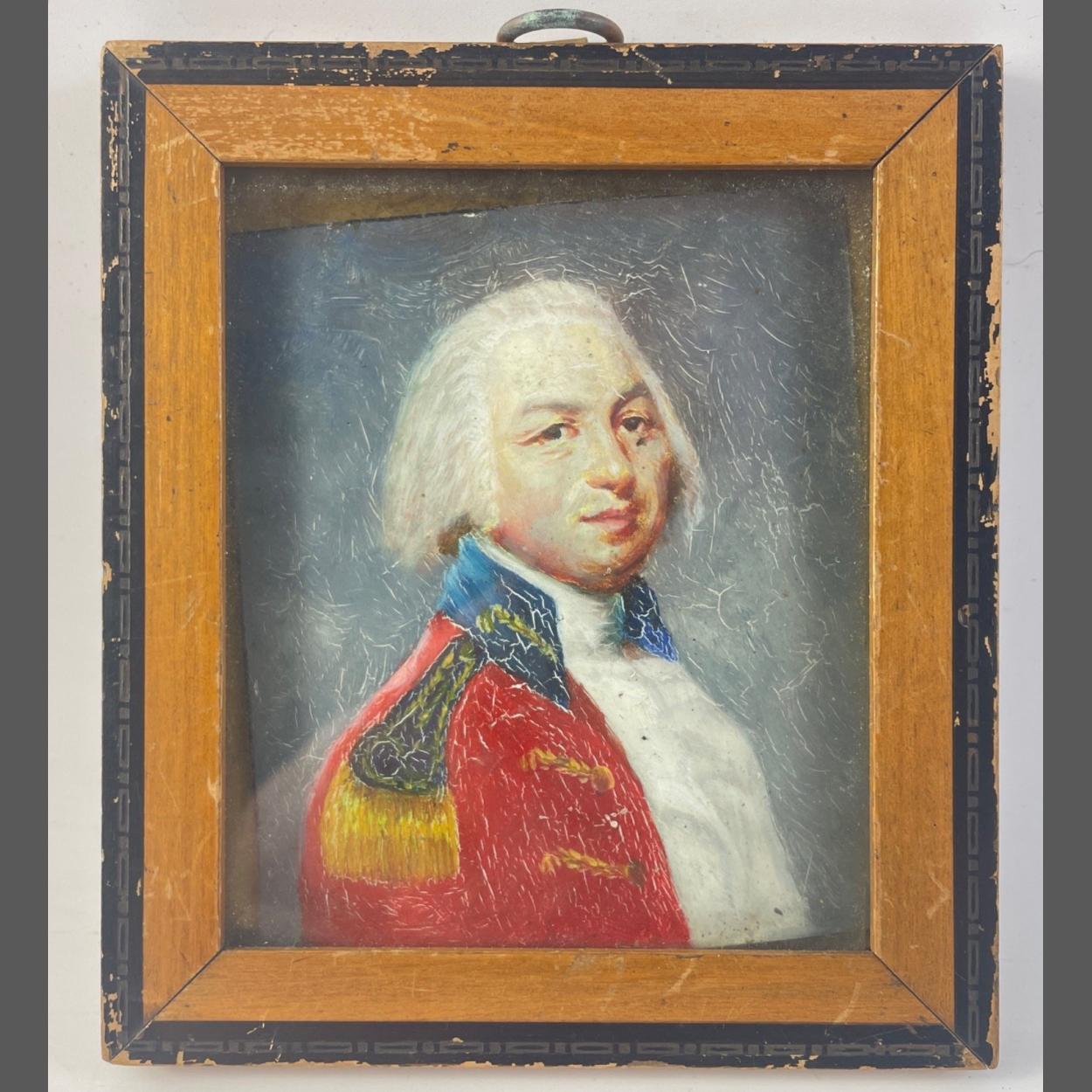 Miniature portrait on tin of a British Military Officer. Loose in frame. Unsigned but done with some skill. 12cm x 10cm approx.
