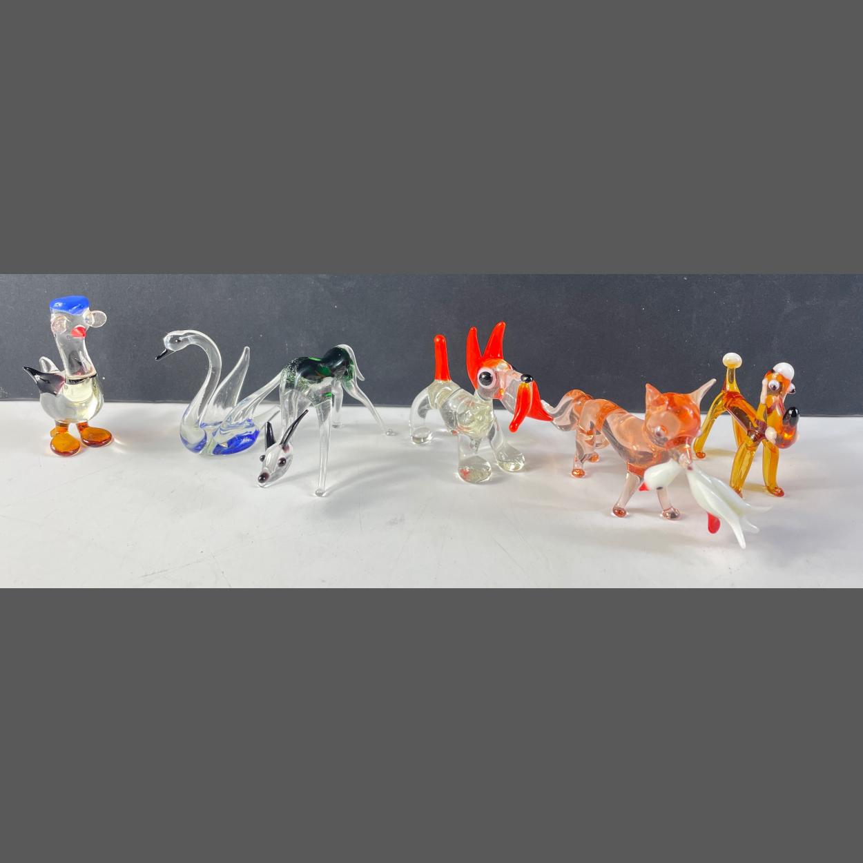 Seven pieces of wee glass Italian animals to include dogs and a duck, a fox, a goat etc