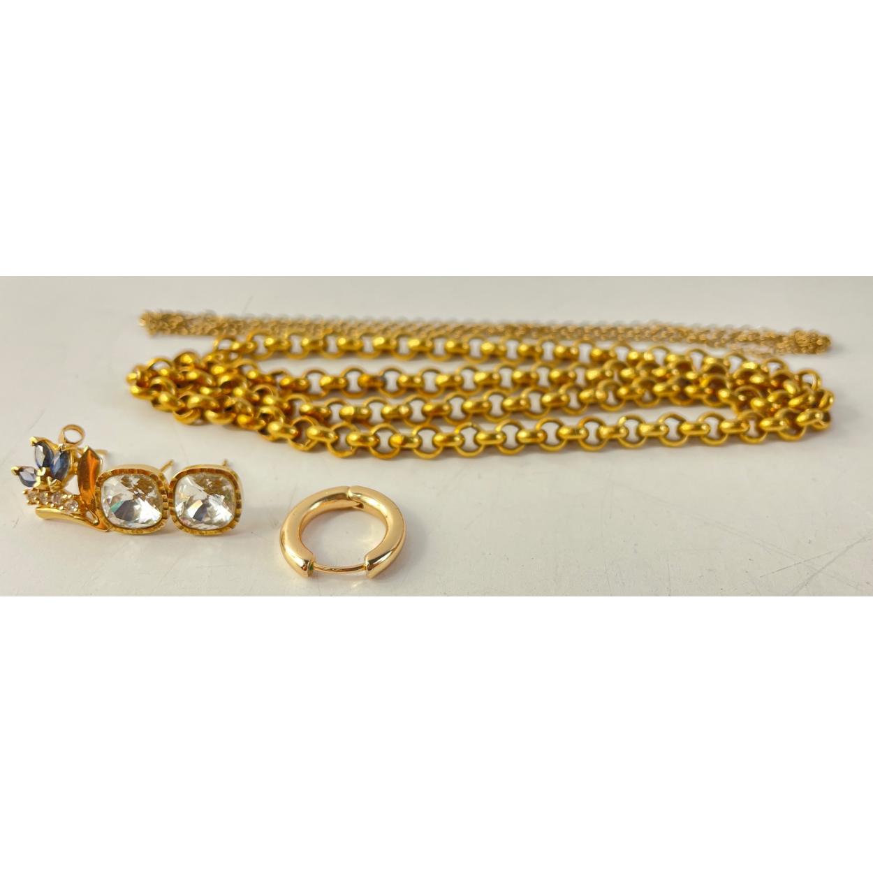 A quantity of unmarked yellow metal items, large link chain and others. Total gross weight 36.9g