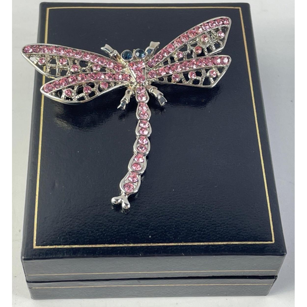 (VNS)A PRETTY bling Dragonfly brooch in white metal with pink stones - dimensions 6cm length x 5cm wing-span approx