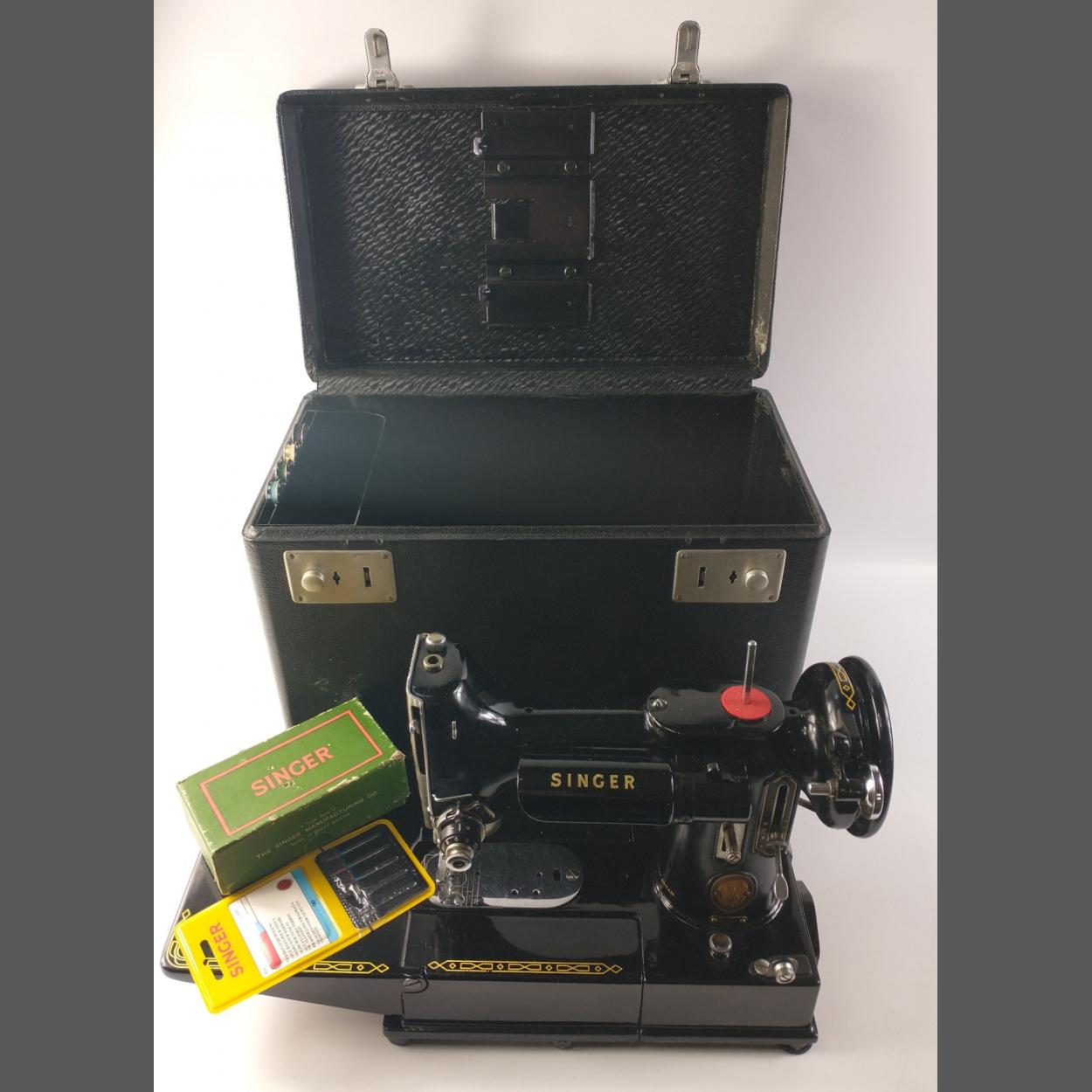 SUPER QUALITY - An 'as new' condition SINGER electric sewing machine with small foldable worktable attached - comes with its original Singer carrycase and a bag of extra bits-n-pieces to include the foot pedal and cable with a pair of seamstress scissors etc