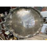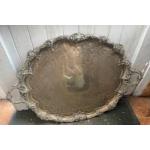 A HUGE VINTAGE SILVER PLATED twin handled serving tray - this tray weighs a 'tonne!' - dimensions 78cm length x 55cm width approx (please check-out the 2nd pic which shows a middle section of the plate been cleaned!)
