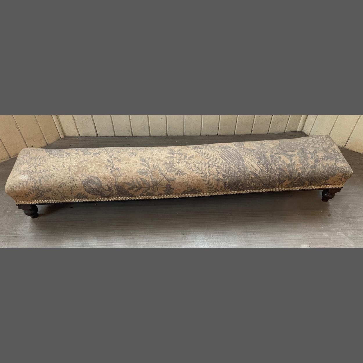 An EXTRA LONG footstool on short leg supports with tapestry cover - dimensions 110cm long x 20cm depth x 15cm height approx