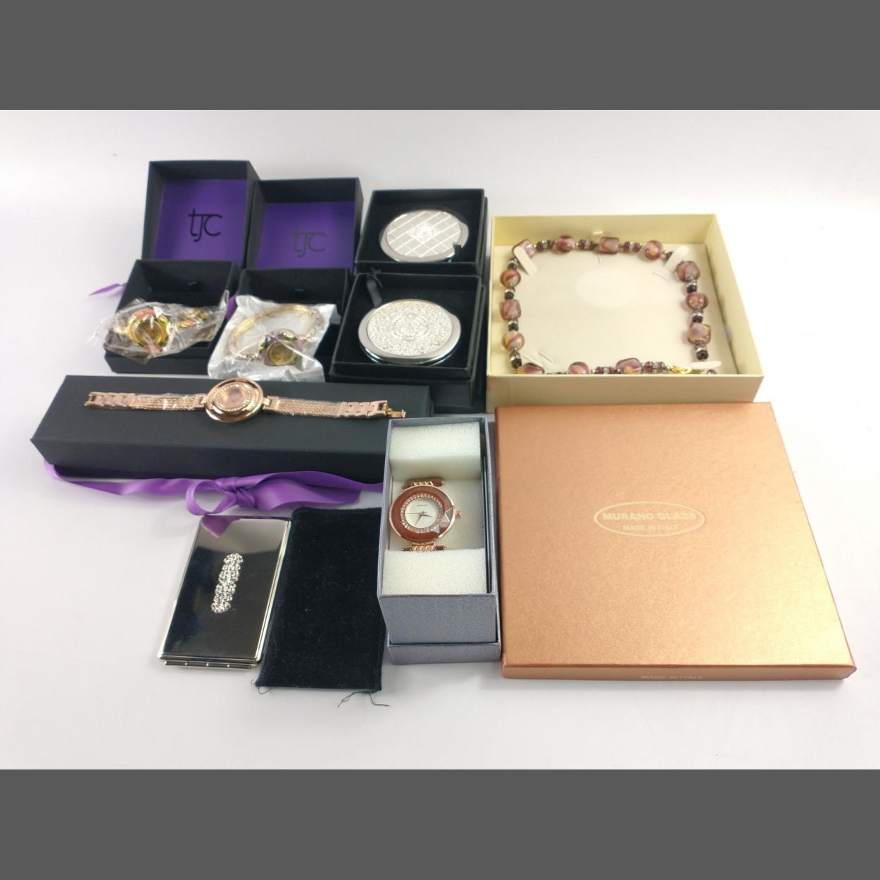 A collection to include a mirror compact, address book, 4 STRADA watches, MURANO glass necklace, etc
