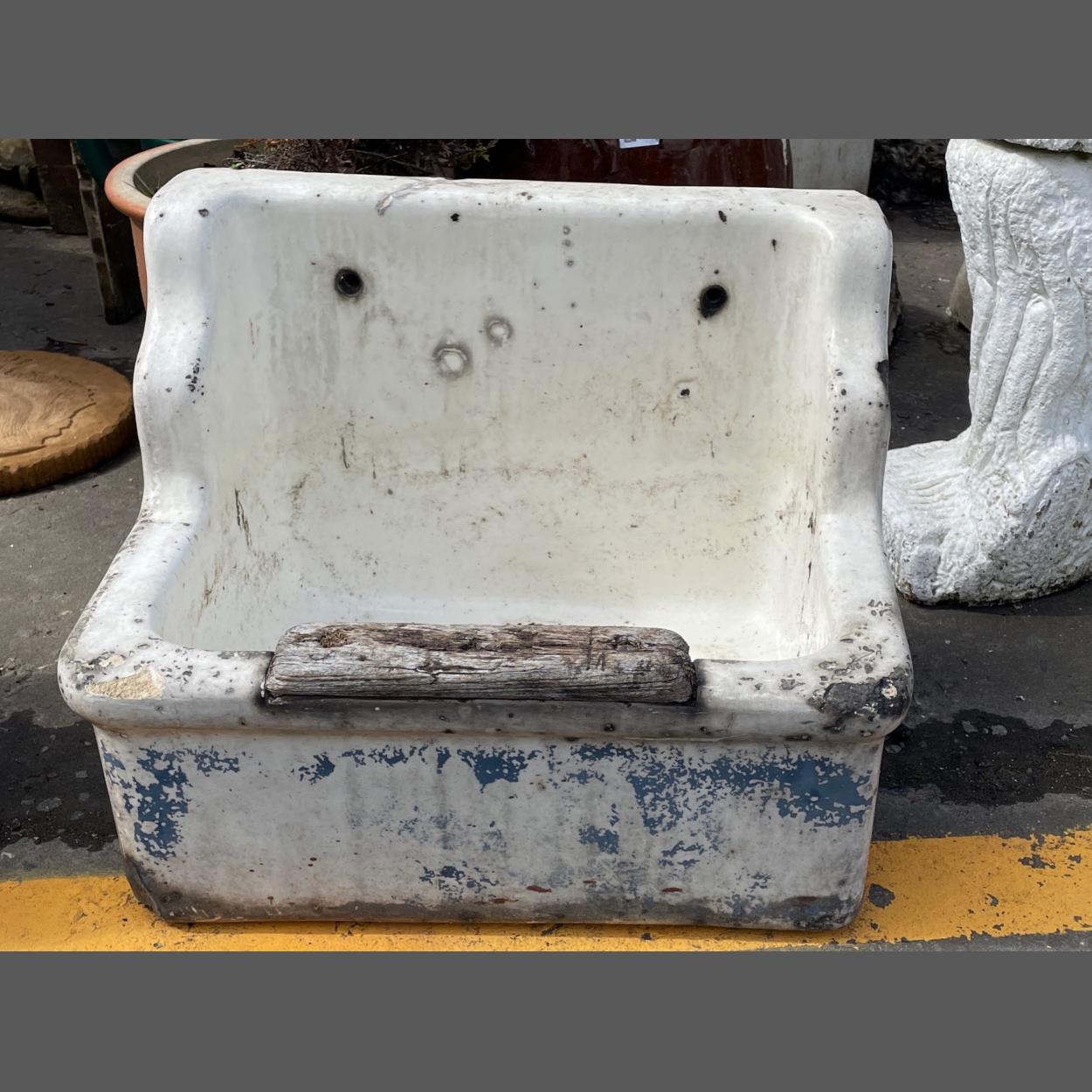 An UNUSUAL ANTIQUE china sink c 1900's - would make a fab feature garden planter! - 18" width x 18" height approx