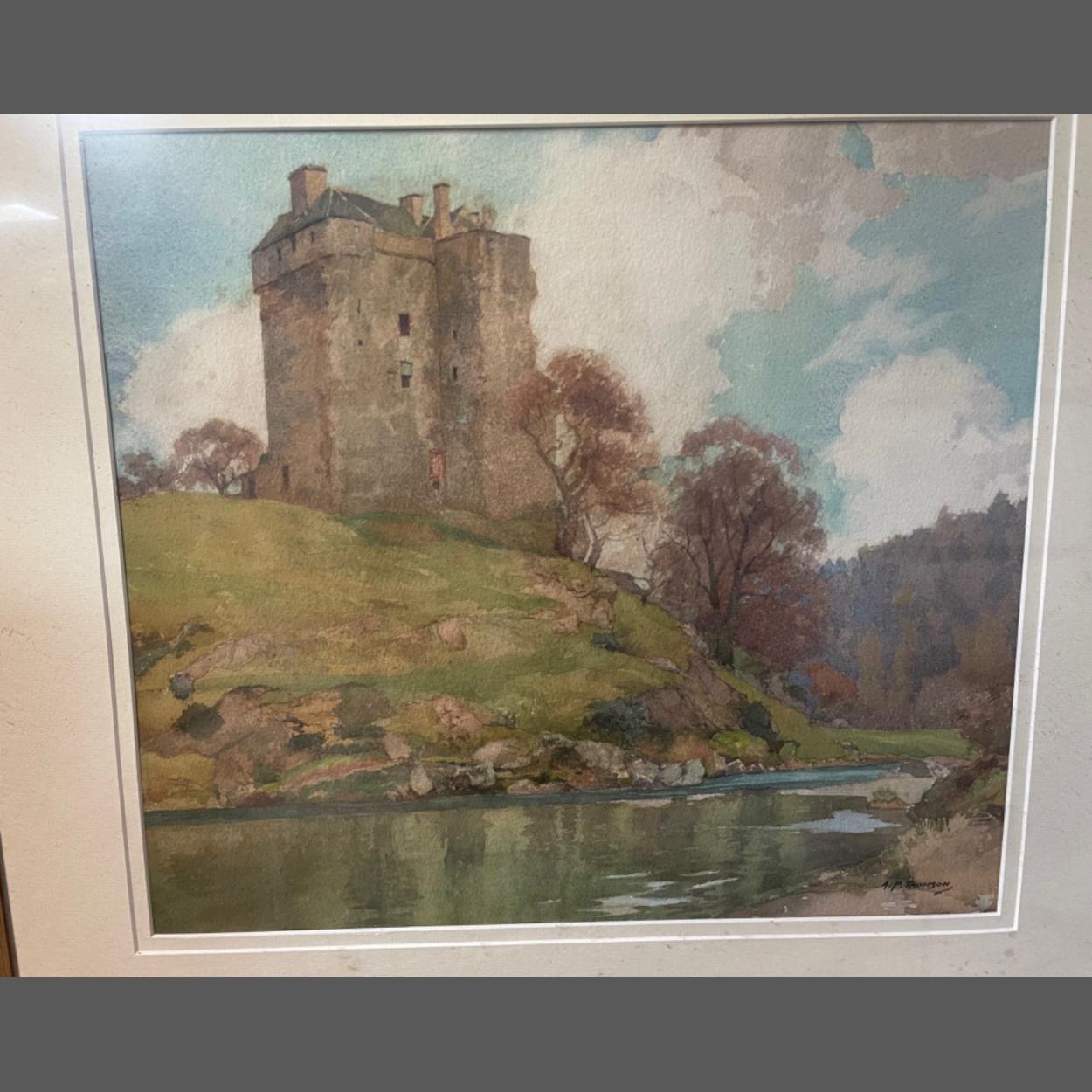 LOCAL PEEBLES INTEREST! - An original vintage framed watercolour on paper by artist I P Thomson depicting an elevated Neidpath Castle - dimensions of watercolour 21" x 18" approx