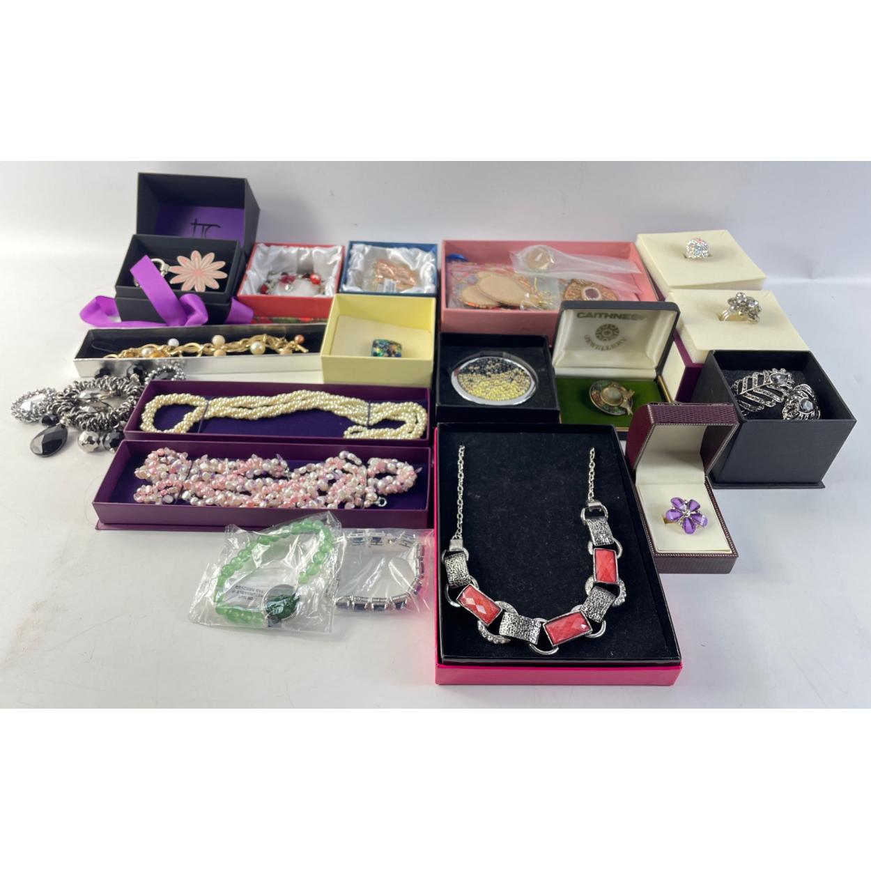 A collection of costume jewellery, mostly by TJC, mostly boxed including a Murano glass ring etc