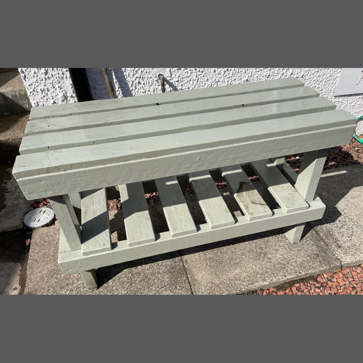 FOR THE GARDEN - A joiner made green painted wooden garden bench or plant table (customer used this for pot plants in the garden) - 3ft across x 16" depth x 18" height approx