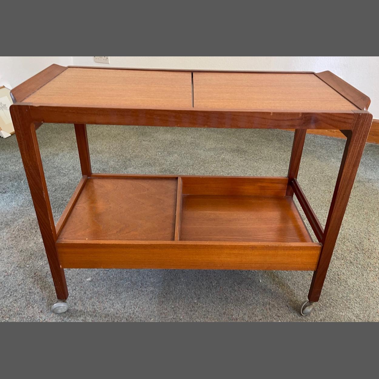 RETRO Teak entertaining trolley on two levels, with extending 'hot-surface' feature - dimensions 3ft width x 18" depth